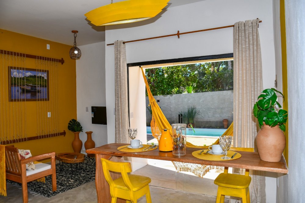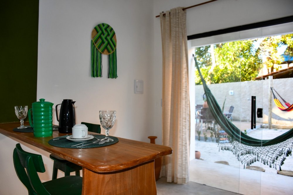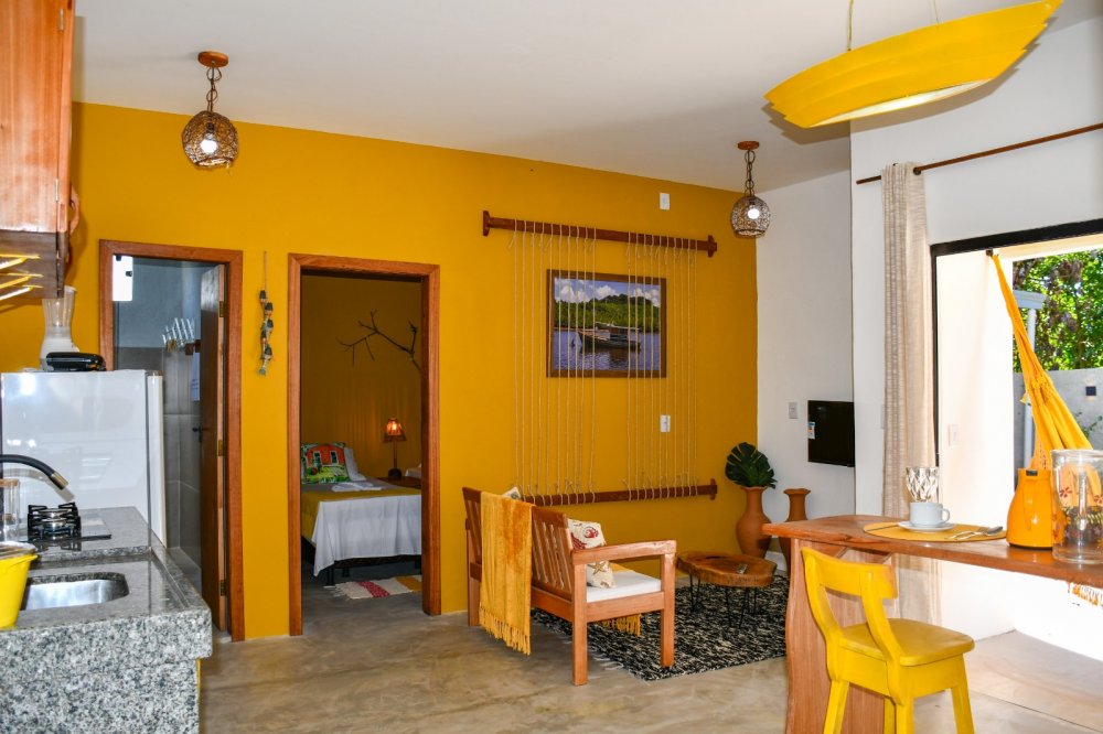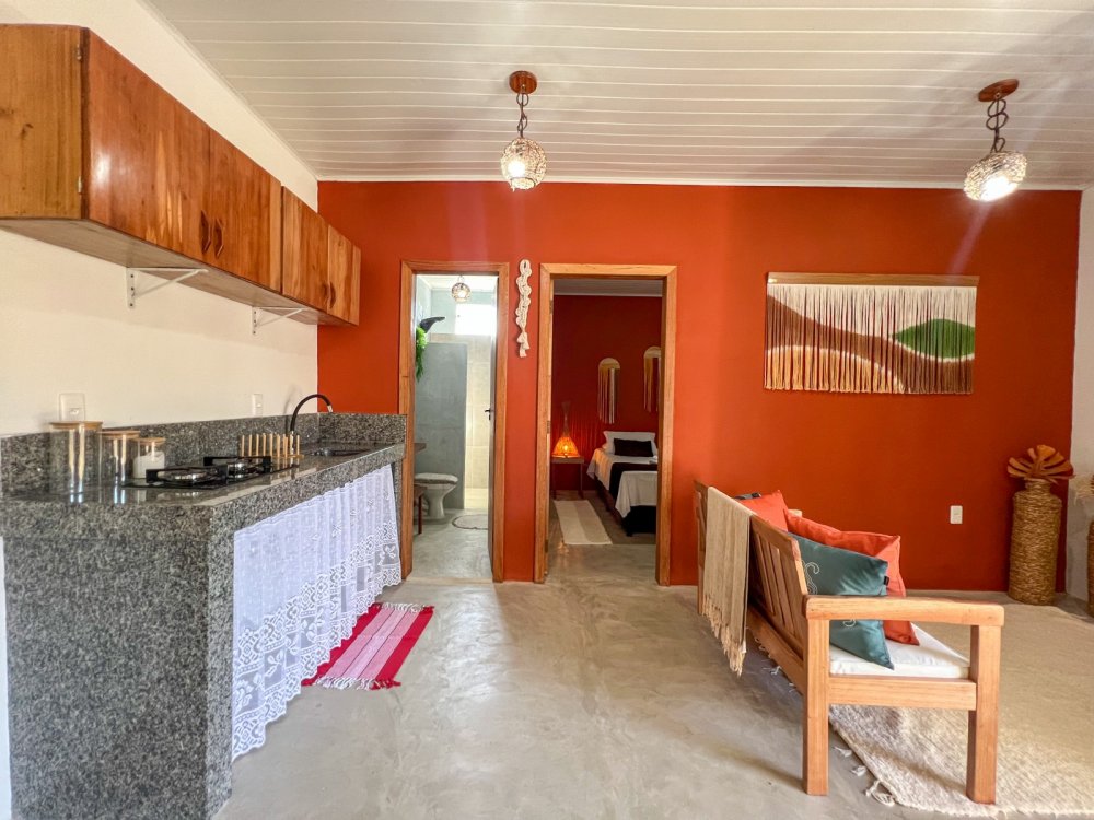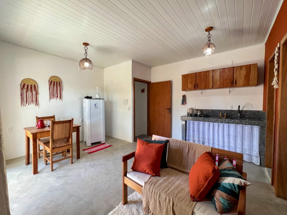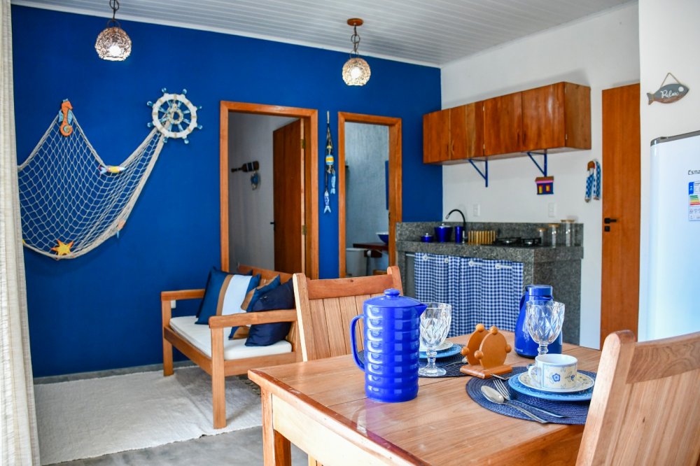 Charmosas kitnetes compostas por quarto e sala, banheiro social, sala de tv e cozinha integrada, as kitnetes contam ainda com uma agradável varanda, onde você poderá relaxar depois da praia. O condomínio é composto apenas por 04 unidades todas elas oferecem enxoval completo para até 4 pessoas. A propriedade conta ainda com uma charmosa piscina e espaço gourmet onde você poderá degustar aquela cervejinha gelada!